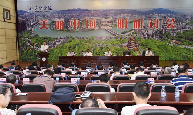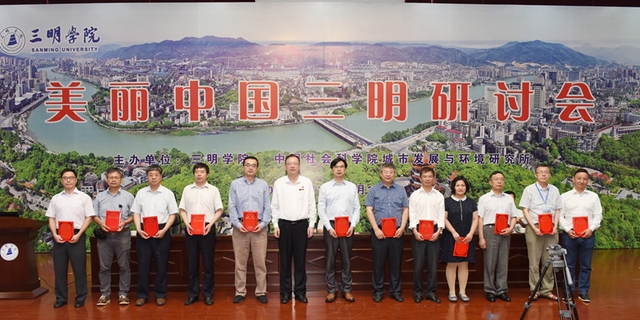 由三明学院、中国社会科学院城市发展与环境研究所共同主办的美丽中国三明研讨会,5月17-18日在三明学院举行。三明市政府副市长林俊德,中国社会科学院城市发展与环境研究所陈洪波研究员、郑州机械研究所王长路研究员,校领导刘健、赖锦隆、吴龙,以及来自北京林业大学、北京航空航天大学、北京工业大学、浙江大学、福建省林业厅、台湾环境保护署等海峡两岸20余家机构、院所和高校的40多名专家学者出席研讨会开幕式。