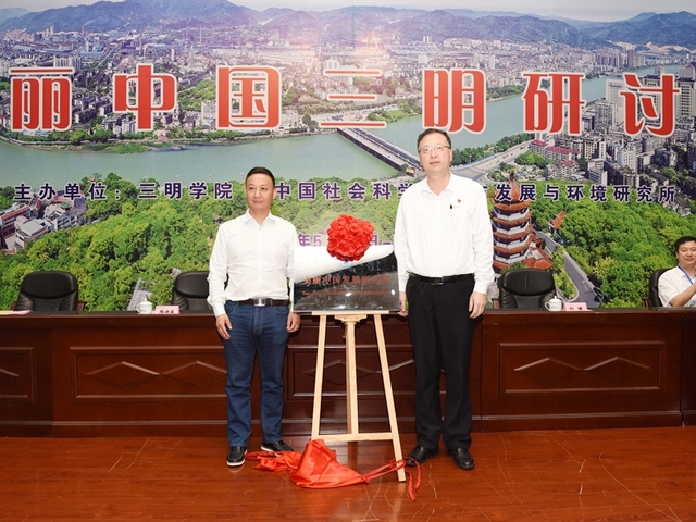 中国社科院城市发展与环境研究所陈洪波研究员和刘健校长为“美丽中国发展研究院”揭牌
