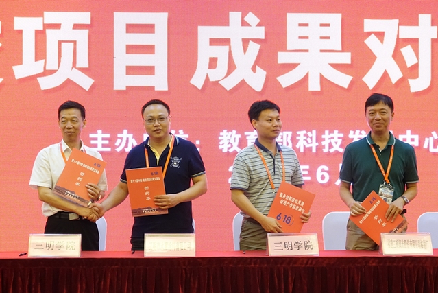 在教育部科技发展中心、省教育厅主办的高校科技项目成果对接签约仪式上,我校“基于机器视觉全自动砂轮片在线更换系统”项目成果与福建三钢闽光股份有限公司棒材厂对接签约;“UV氟碳涂料的研发”项目成果与三明市永耀涂料有限公司对接签约。在 “6·18”福建省院士专家工作站授牌暨院士项目签约仪式上,我校院士专家工作站正式升级为省级院士专家工作站。