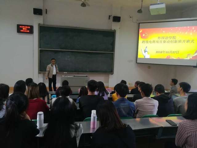 10月27日上午,我校“跨境电商项目驱动创新实验班”开班仪式在外语楼B102举行。张君诚副校长,厦门宏聚工贸有限公司总经理张兴川(外国语学院95级校友)、睿泉工贸(厦门)有限公司总经理赵睿泉、厦门恒磁电子贸易有限公司总经理彭善玉,校教务处、外国语学院、旅游学院单位负责人及创新班全体学员参加开班式。
