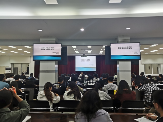 以新冠肺炎疫情为起点,黄宝玖从“民族复兴需要强大的精神力量”“抗疫斗争铸就伟大抗疫精神”“汲取精神力量,奋力复兴伟业”三个方面展开了一堂别开生面的思政课。通过回顾党和国家推进疫情防控和复工复产的举措,他以历史现实、国际国内多维度对比,生动解读中国人民和中华民族生命至上、举国同心、舍生忘死、尊重科学、命运与共的伟大抗疫精神。