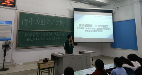 海外学院(外国语学院)资助政策宣讲团成员沈志强详细介绍国家励志奖学金的评分细则,使同学们更加清楚的了解评议的过程。其次全体家庭经济困难学生签署诚信承诺书,宣讲团成员向同学们普及征信、金融等相关知识,号召同学们树立诚信观念、增强法律意识,使自己成为适应社会主义市场经济需要的诚信人才。最后,观看国内漫画家林超的《那年那兔那些事儿》,漫画将中国近现代历史上的一些军事和外交的重大事件以Q版动物造型的形式展现出来,以生动有趣的形式,让同学们接受爱国主义教育。
