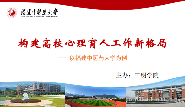 讲座上,丁老师以中医药文化为依托,为大家详细介绍了“养身、养心、养性、养德”的工作思路,并提出“身心共耗、未病先防、自我疗愈、精神内守”等多重方法。接着,丁老师提出了新的心理育人理念与五级心理育人目标,从“找疾病”到“提升全体学生心理健康素养”,强调动态发展和“涵养”的机制。最后,丁老师分享了福建中医药大学的心理育人六项实施计划。从五级组织体系、综合工作体系、心理危机干预体系、心理育人队伍培训、朋辈队伍建设及新媒体运用六个方面进行了详细介绍。