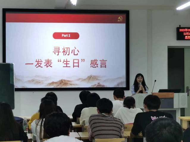 寻初心,发表一次“生日感言”。活动现场,毕业班党员代表分享了她们入党的过程以及成为预备党员时的心情,“激动”是她们一直提到的字眼,他们用最真挚的话语道出了入党前和入党后,学生时代和非学生过程的不同,勉励学弟学妹珍惜在校时光,巩固专业知识,学习真本领,发挥好党员先锋模范作用,用自己的行动践行着初心使命。代表杨文文说:“要坚信自己,克服‘畏难’情绪,不要过多在意他人评价。”这提醒着每一位党员要坚持初心,做好本职任务,牢记党的号召和青年的使命,迎难而上,始终担当在前。