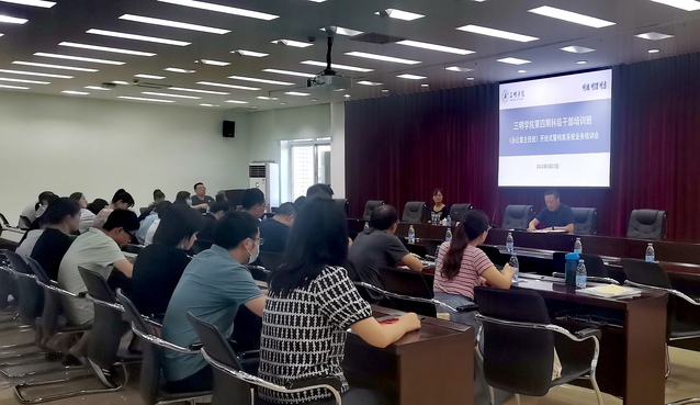 6月23日下午,三明学院第四期科级干部培训班(办公室主任班)开班式暨档案系统业务培训在行政楼八楼会议室举行,全校各单位办公室负责人和兼职档案员30余人参加培训。