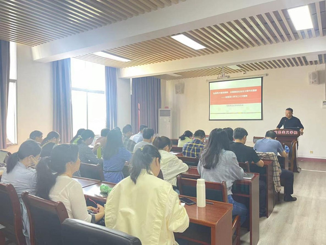 10月19日下午,马克思主义学院党总支副书记邹晓芟以《弘扬伟大建党精神,全面建设社会主义现代化国家——全面深入学习二十大报告精神》为题,为马克思主义学院全体教师讲授主题党课。
