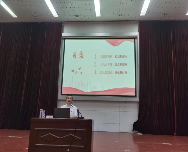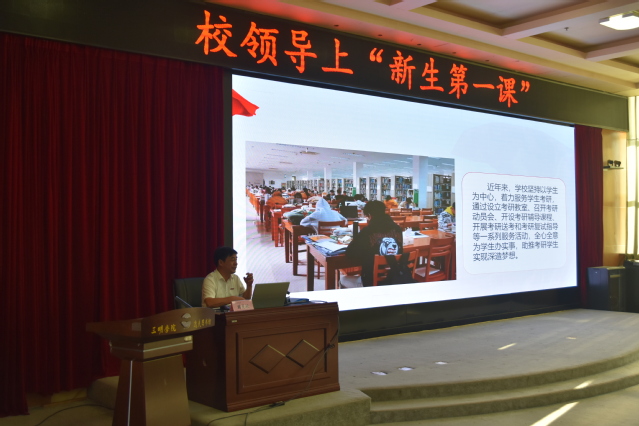 10月4日晚,副校长吴龙在图书馆学术报告厅为机电工程学院、信息工程学院2022级新生讲授开学第一课。