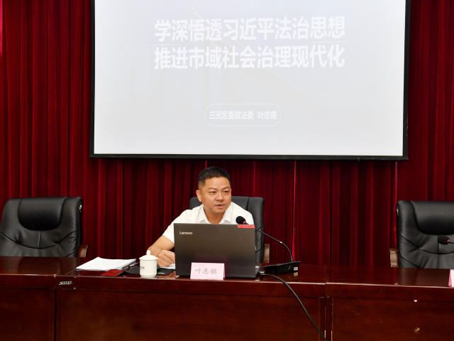 11月11日上午,三明学院党委理论学习中心组召开扩大学习会,特邀三明市三元区委政法委副书记叶志铭来校作《学深悟透习近平法治思想 推进市域社会治理现代化》专题报告。全体校领导出席学习会。校党委副书记廖景榕主持学习会。