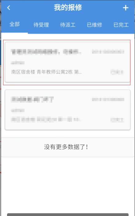 注册完成后、进入报修界面、在界面中点击物业报修、进入物业报修界面点击右上角(+)进行报修信息填写界面,完善报修信息。点击提交完成报修。完成后可看到报修信息。
