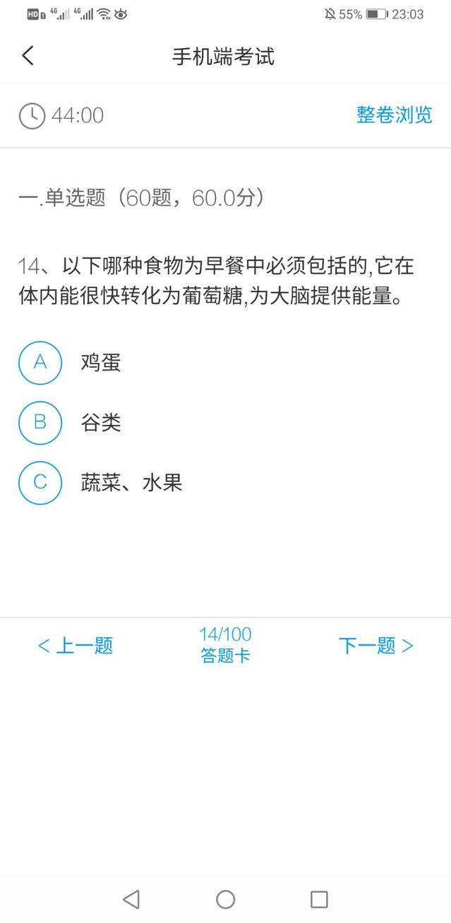 比赛报名得到了广大同学的积极响应,各院参赛人数多达900人。经过充分的筹备和组织,线上健康抗疫知识竞赛正式开赛,在学习通课程里的竞赛入口进入考试,开启答题状态。此次竞赛题目有选择题和判断题,竞赛题目内容涉及疫情防护知识、生活饮食常识和生物化学知识等,考察了参赛同学的常识积累与判断能力。竞赛过程中,参赛同学自我严格要求,全程独立自主答题,在规定时间内完提交试卷,保证了比赛的公平公正性,大家都充分展示自我,边赛边学,很多同学表示通过比赛启发很大,学到了很多知识。