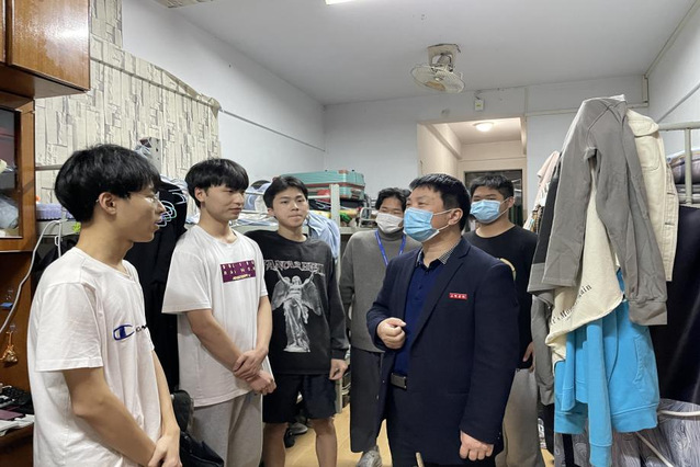 3月14日,福建多地发布紧急公告,新增病例的数字不断攀升,面对迅速蔓延的疫情,三明学院重启校园封闭式管理。“我是院党委书记,更是一名党员,今晚我带头值班!”在看过值班表后,伍荣生把自己的名字从周四挪到了周一。封闭式管理的第一天有着诸多不确定因素,伍荣生有着自己的担忧,学生能否理解学校的管理方式,能否按时返回宿舍,会不会出现突发事件,这些问题缠绕在他的心里。于是,他在晚上十点与值班辅导员一起逐个走访学生宿舍,逐个询问学生的健康状况,了解线上教学情况,传达学校疫情防控工作要求,向大家传递着战疫必胜的信念。