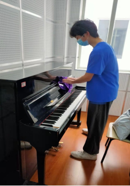 劳动中,音乐学党支部党员们配合默契、动作迅速,他们认真打扫了艺术大楼的地面并对擦拭各类音乐器材,确保不留下任何卫生死角,劳动过后,党员们满头大汗,但看着整洁的乐器、干净的地面、明亮的教室,一切的苦累都是值得的,脸上露出满意的微笑。支部党员俞燕霞说道,“这次劳动非常有意义,看着干净整洁的艺术大楼,觉得自己的辛苦都是值得的,学校为我们提供如此高雅的学习环境,日后来练琴时也会注意保持琴房卫生,我也会呼吁身边的同学们共同爱护艺术大楼。”