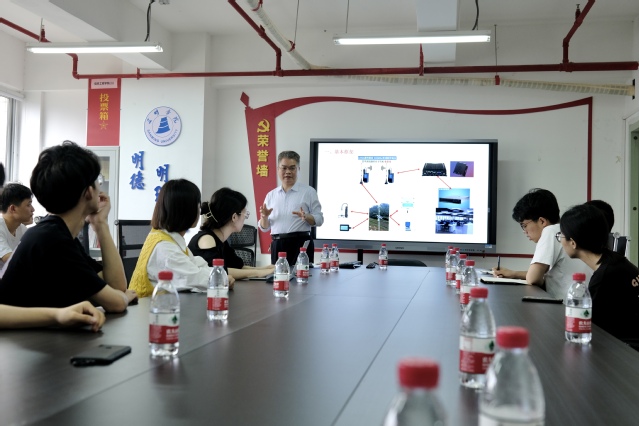 会上,廖逢钗教授介绍了“智慧农业物联网综合应用开发”项目基本框架,在劳动基地安装传感器到空中无线通讯再到机架式服务器来实现数据的采集、传送、储存,显示等一体化流程,有效利用物联网应用技术解决学生劳动实践难题。“听了廖老师的介绍,最大的感受就是我们这个专业未来前景广阔,只要踏实肯学、大胆创新、学以致用就一定能收获满满。”2019级物联网工程专业章诗莹同学如是说道。