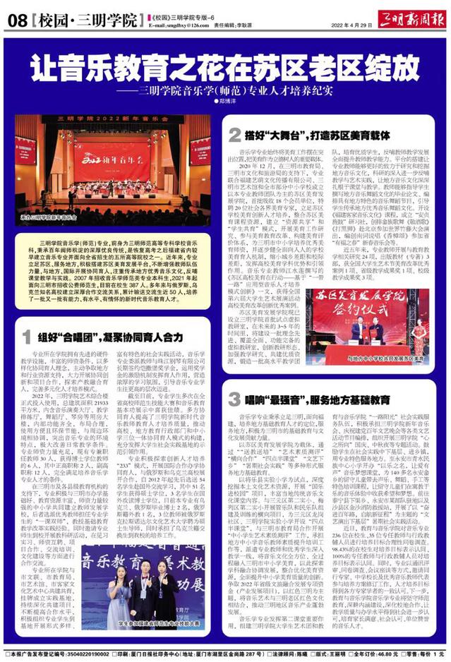 【三明新周报】让音乐教育之花在苏区老区绽放——三明学院音乐学(师范)专业人才培养纪实