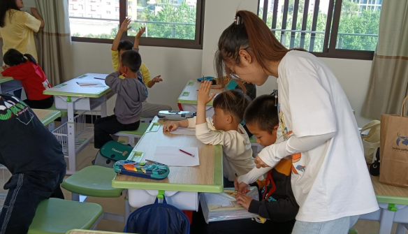 据悉,志愿服务队为三明学院附属实验小学的小朋友们度身定制了英文课外兴趣班,并安排部分志愿者辅导小学生作业,保证在提升学生课外兴趣的同时,课内知识的巩固也能稳步推进。