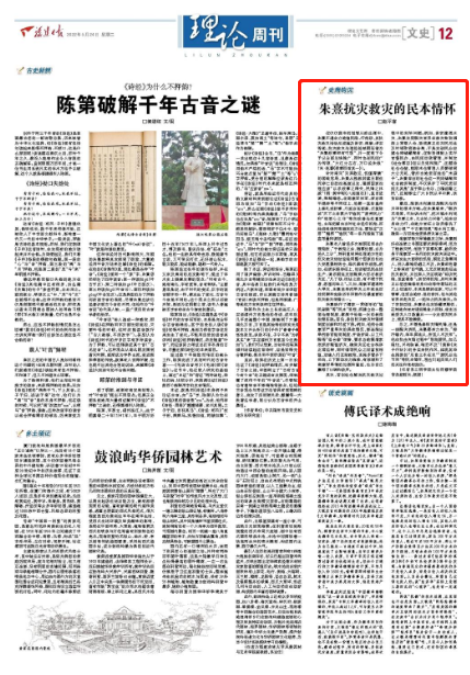 总之,不管是奏报灾情民情,还是一线赈灾济民,朱熹都亲力亲为,“按行境内,单车屏徒从,所至人不及知”。他在抗击灾情过程中“恳恻爱民,如己隐忧,兴利除害,唯恐不及”(黄榦《朱子行状》)的务实亲民作风,体现其毕生推崇的“足食之本在农”“爱民必先节用”等民本情怀,理应引起后世人们的关注和竞相效仿。(作者系三明学院文化传播学院常务副院长、教授)