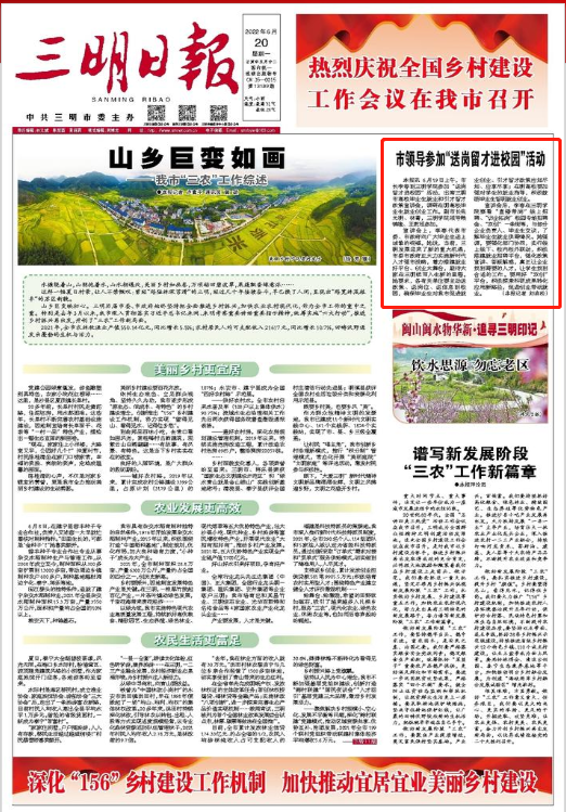 本报讯6月19日上午,市长李春到三明学院参加“送岗留才进校园”活动,出席三明市高校毕业生就业和引才留才政策宣讲会,调研在明高校毕业生就业创业工作。副市长张元明、林菁,三明学院领导赖锦隆、王乾廷参加。
