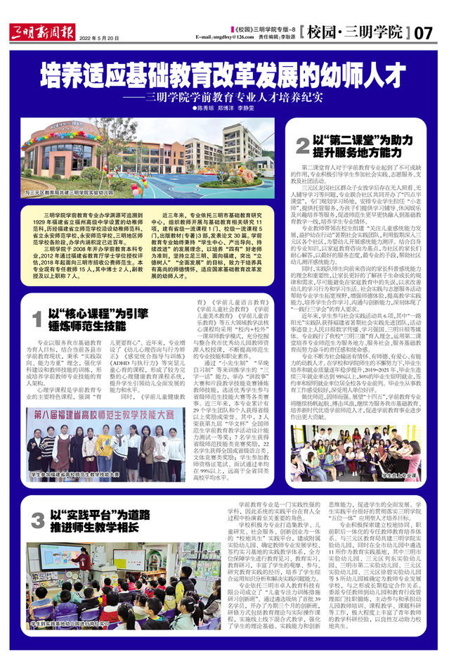 【三明新周报】培养适应基础教育改革发展的幼师人才