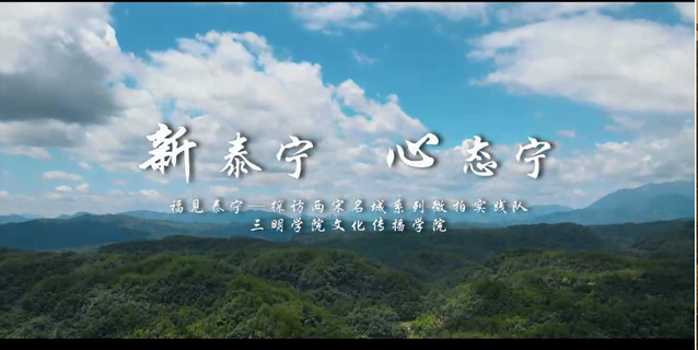 泰宁县情绪宣传片《新泰宁·心态宁》由三明学院文化传播学院微拍泰宁暑期实践队师生打造。本片围绕“回归泰宁 初到泰宁”两个元素勾勒出新泰宁和心态宁两个主题,分别选取女主作为逃离大城市返乡创业青年和初到泰宁找创作灵感的男建筑设计师为主线,讲述他们在泰宁静心生活和工作的故事。
