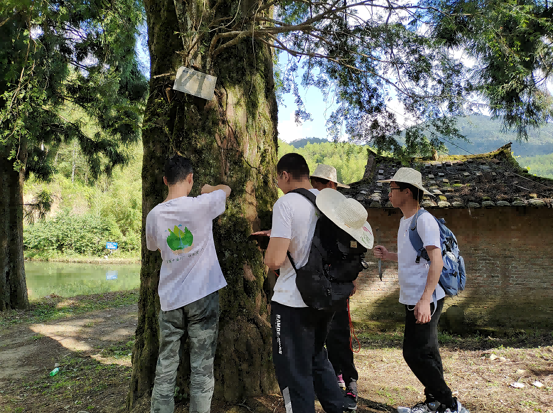 永安天宝岩国家级自然保护区是我国小区域生物多样性较为丰富的地区之一,拥有各种动植物640余科3200余种,为闽江的重要水源涵养林区。为了实地考察天宝岩植物的情况,实践队前往永安天宝岩国家级自然保护区通过测量树干胸径、采集植物样本等方式进行实地勘察,记录测量的数据并标识采集地信息,为下一步植物保护提供数据支撑。在考察调研途中,实践队成员认识了各种各样的植物,例如南方红豆杉、湖北海棠、三花冬青等。活动过程中,实践队成员们通过张贴海报,宣传保护生物多样性的重要意义,同时拾取考察路途中的垃圾,用实际行动保护自然生态环境。