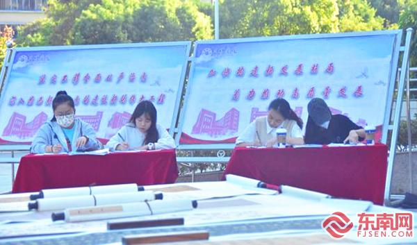 在书写技能系列活动中,共收集硬笔字、毛笔字等书法作品100余件,同学们以笔墨献礼二十大,充分展示学院师生朝气蓬勃、积极向上的精神风貌。
