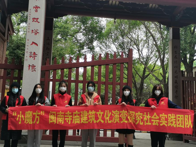 “我们的文化绵延不绝,青年的创造生生不息。”建筑工程学院“闽都古迹探究”实践队奔赴福州三坊七巷历史文化街区,绘测考量三坊七巷的建筑构造及历史内涵,设计完成三坊七巷绘画渲染、摄影作品及帆布袋、明信片、马克杯、日历等10余件文创产品。“小魔方”实践队则聚焦闽南寺庙古建筑文化的演变调研,对泉州开元寺内的主要建筑进行实地拍摄与数据测量,形成微视频、调研报告、影像资料等实践成果。