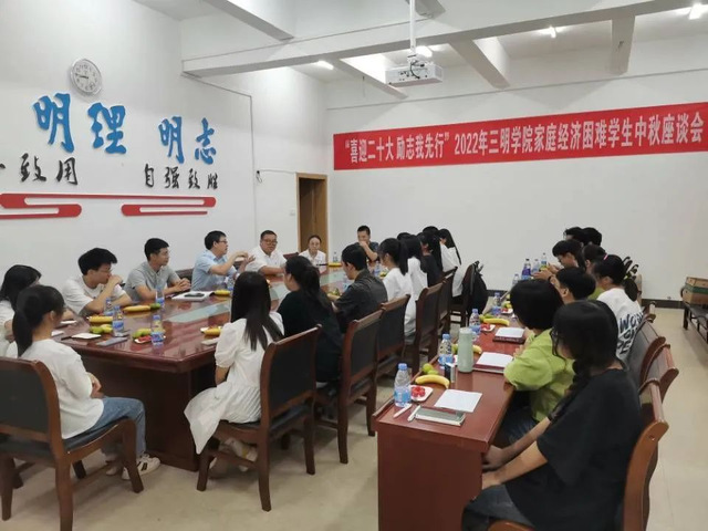 一次“倾心交流”的座谈会。在三明学院南区学生活动中心会议室,学校资助管理科举办“喜迎二十大 励志我先行”2022年三明学院家庭经济困难学生中秋座谈会。学工部负责人为每位同学送上了香甜的月饼,并关心慰问他们在学校的学习生活情况,鼓励学生要以积极乐观的心态面对生活。