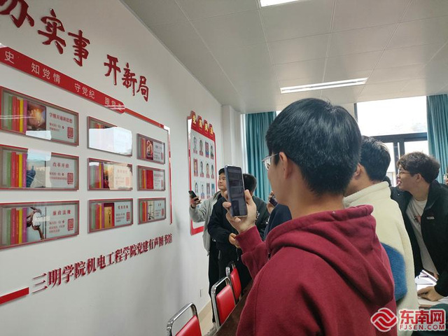 东南网12月5日讯(通讯员 张红芳 文/图)近日,三明学院机电工程学院车辆工程学生党支部“青春献礼二十大,砥砺奋进跟党走”“七个一”主题党日活动正在如火如荼地进行着。活动现场,党员们叩响“有声党建墙”,再次聆听党的二十大现场工作报告。