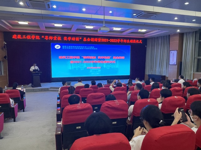 捐赠仪式上,1984级工民建专业李伟校友、2016级土木工程专业肖成友校友分别向建筑工程学院“尊师重教、奖学助困”基金捐赠10万元、1万元。2021-2022学年学习标兵、科技竞赛标兵等类别的59名个人和50个团队获得专项奖励。