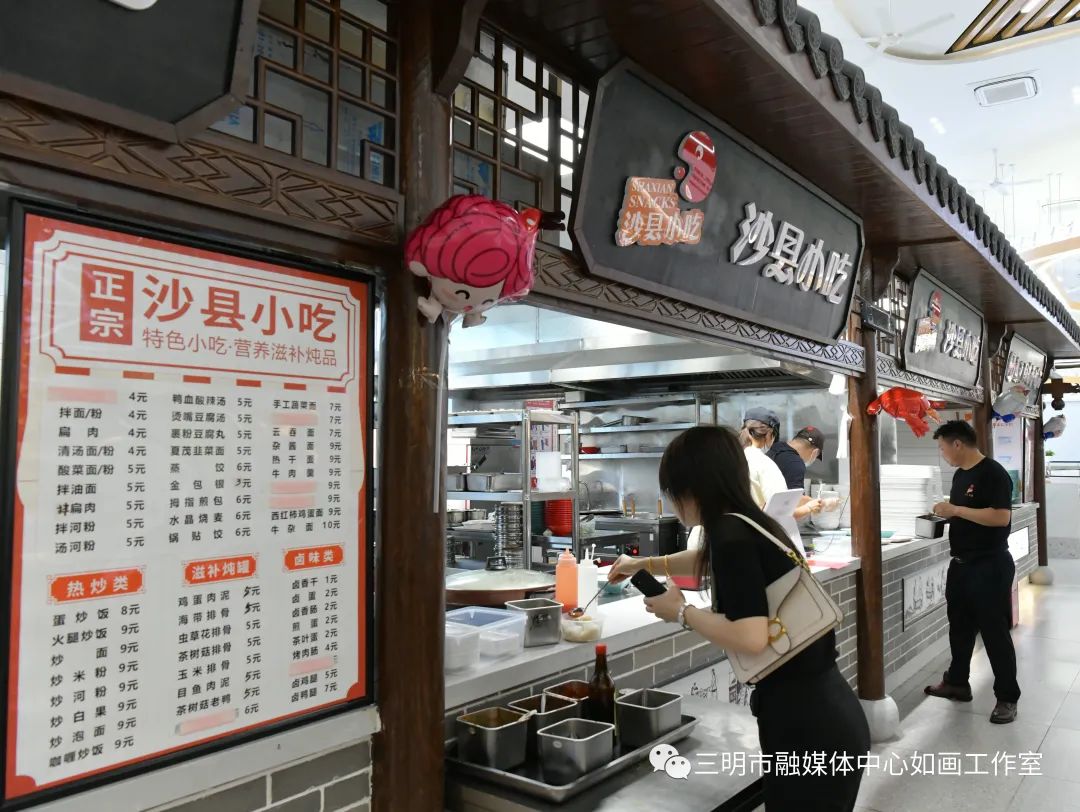 餐厅内设有沙县小吃技艺传承人小吃等特色餐饮及沙县小吃文化宣传板块。时尚的校园餐厅,集体验、休闲、娱乐于一体,不仅提供美食,更让学生们在用餐过程中,感受到沙县小吃文化的独特魅力,为学生提供更优质的用餐体验。