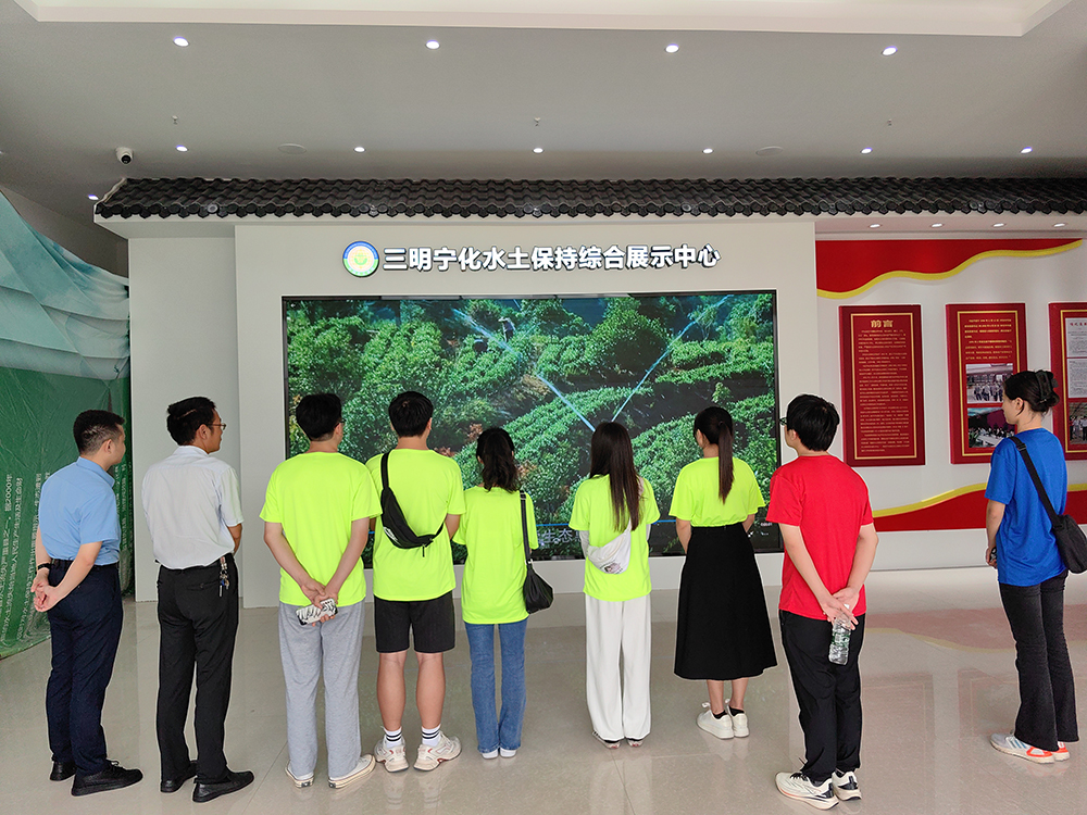 一个个难题、一道道难关、一片片心血………在讲解员的引导下,实践队通过走访参观、调查研究等形式先后参观了水土流失篇、领导关怀篇、综合治理篇等水土治理篇章,并通过拍摄视频、撰写心得等方式深刻体悟宁化水土流失治理攻坚战取得的伟大成就。“伟大的力量和信仰支撑着宁化三十余载坚定不移地全面深化水土保持改革,我们青年要学习宁化县这种‘滴水穿石、人一我十’的精神,用青春力量守护好三明‘绿树成荫,荒坡生金’的绿色新篇章。”实践队成员吴建瀚在心得体会当中写道。