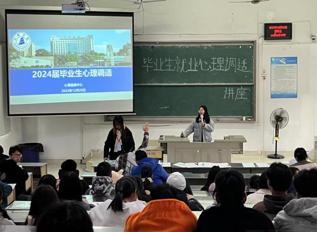 帮助毕业生做好职业准备,提升职场适应能力,学生处在鸿文楼201教室举办毕业生心理调适专题讲座。特邀三明学院心理健康教育中心专职教师郭桂婷担任主讲。