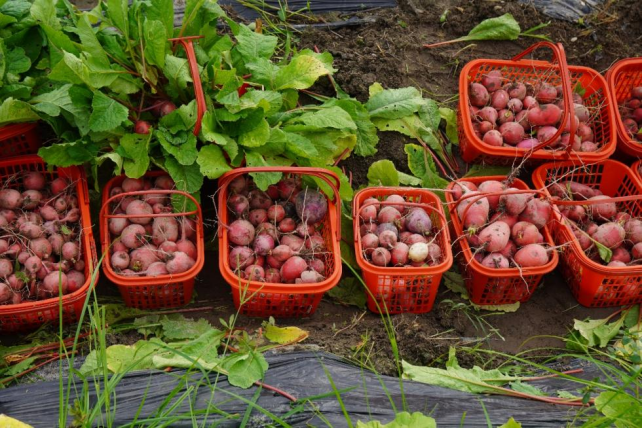 雨后的田间,放眼望去,一片生机,藏在绿叶下的粉嫩萝卜饱满圆润、格外引人。学生们在老师的带领下拿着各种各样的工具,迫不及待进入田间,仿佛回到和泥土亲切交流的童年,除草、采摘、去叶、分拣,每一个动作都十分认真专注。现场其乐融融,师生们相互配合,欢声笑语,共同享受劳动的乐趣,感受泥土的味道与温暖。