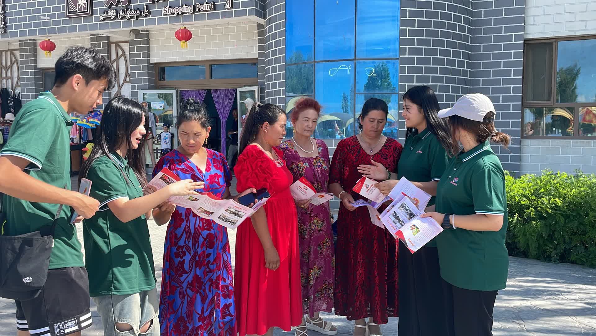 近年来,博湖县博斯腾湖乡积极响应号召大力发展沙漠文化旅游项目,全面开展乡村振兴建设工作。在博斯腾湖旅游景区,实践队队员们通过分发普通话宣传手册、现场讲解等方式展开推普行动。他们不仅结合当地的风俗和文化进行讲解向当地居民普及说好用好国家通用语言文字的意义,提升了他们用好国家通用语言文字传播民族文化的意识,也向外地游客宣传新疆特色风俗文化和脱贫攻坚的奋进故事,当好铸牢中华民族共同体意识和推动乡村振兴的精彩讲述者和忠实传播者。