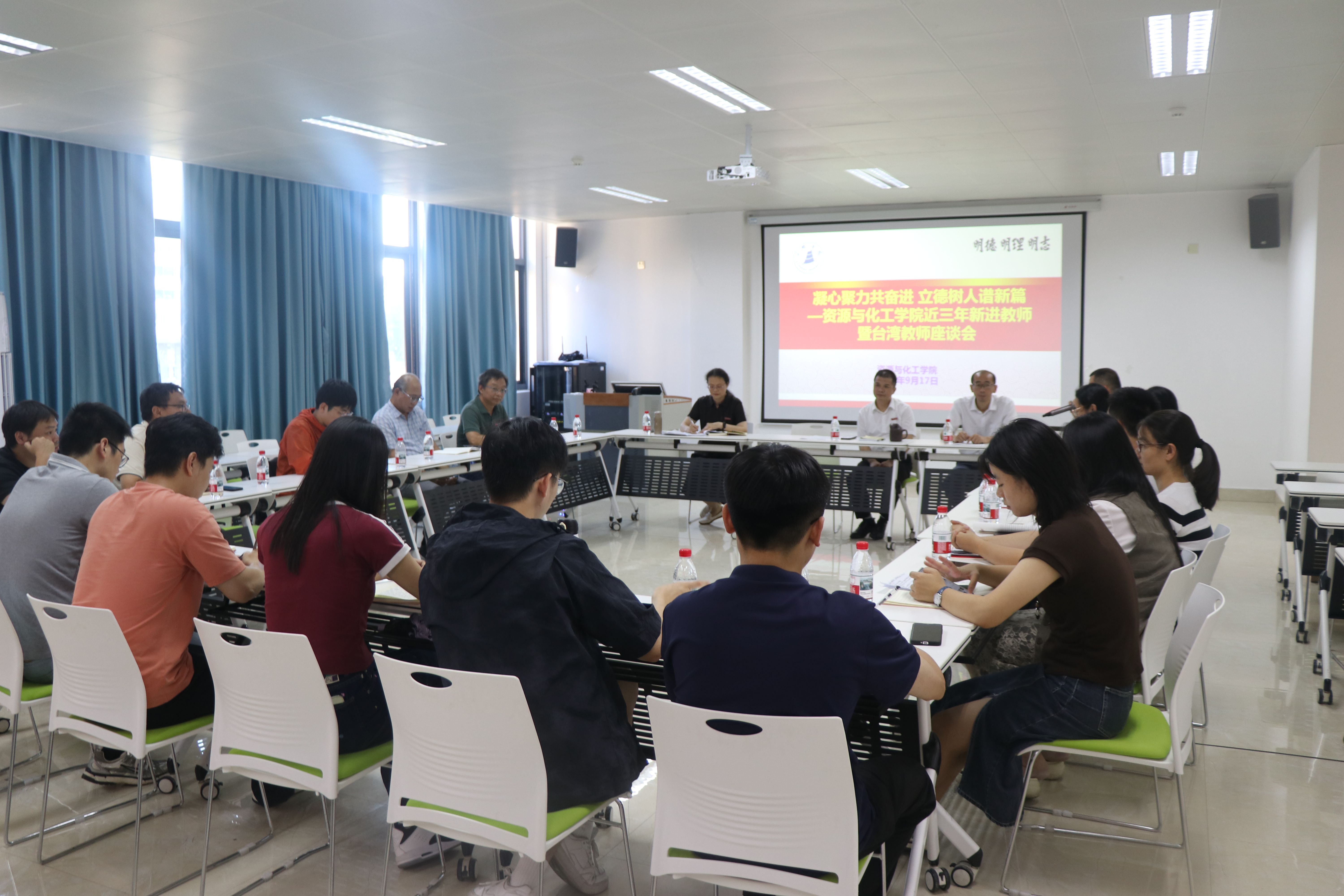 9月17日,资源与化工学院召开近三年新进教师暨台湾教师座谈会。院领导班子与近三年19名新进教师、台湾教师代表齐聚一堂,共话育人初心与使命。
