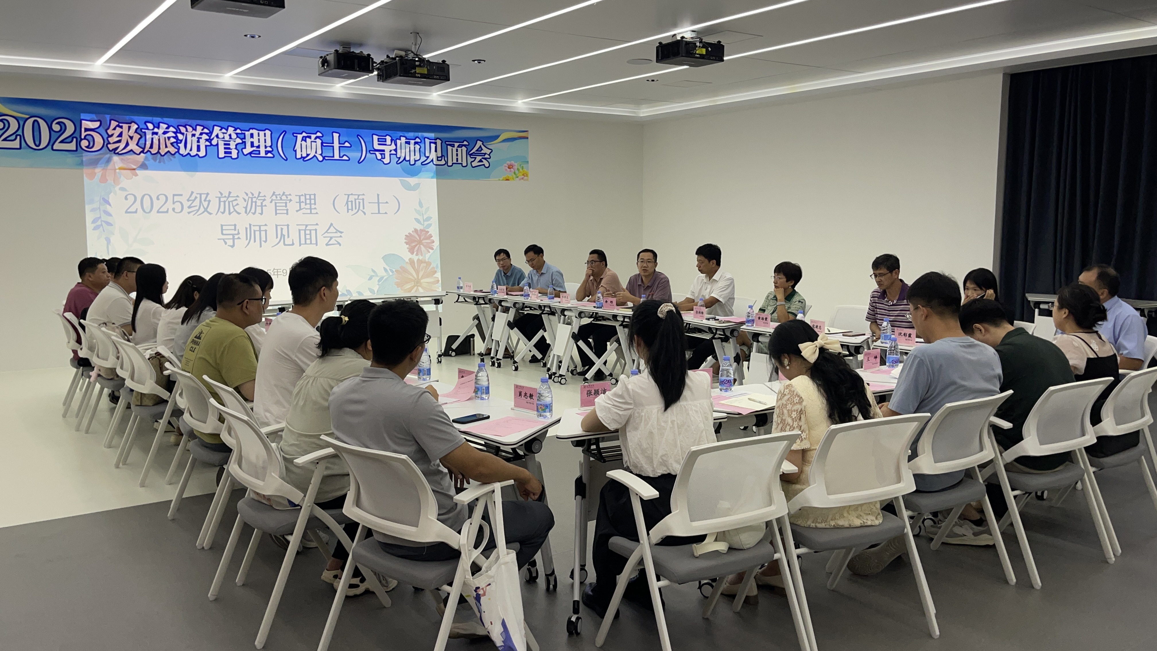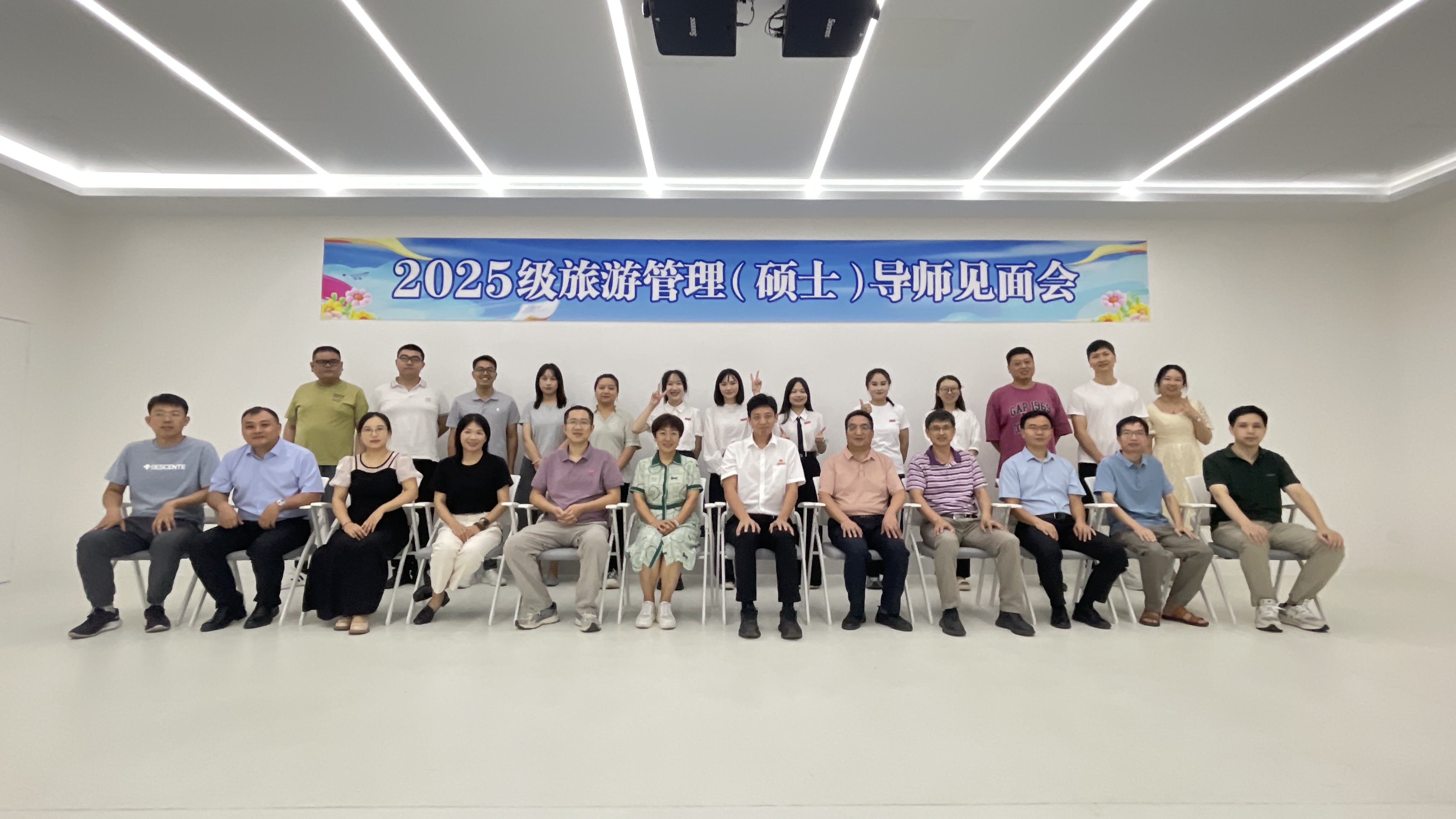 2025年9月17日,经济与管理学院在厚德楼203隆重举行2025级旅游管理(硕士)专业导师见面会。院党委书记叶志鹏,主持工作副院长张桂梅、副院长李想、研究生导师、研究生相关负责人以及2025级旅游管理专业研究生共同参与了此次活动。