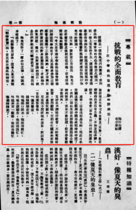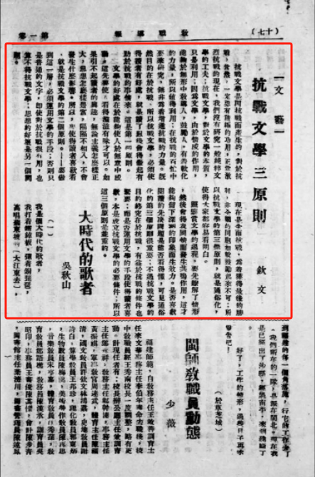 刊物发表了大量紧密联系战争形势,反映社会状况、师生动态,宣传抗战救国、号召青年从军等的文章与图片,如王秀南撰写的创刊辞《明耻教战》,以及许钦文、吴秋山等人的文艺作品,还刊载了胡适、陶行知等各界人士的文章或译作。