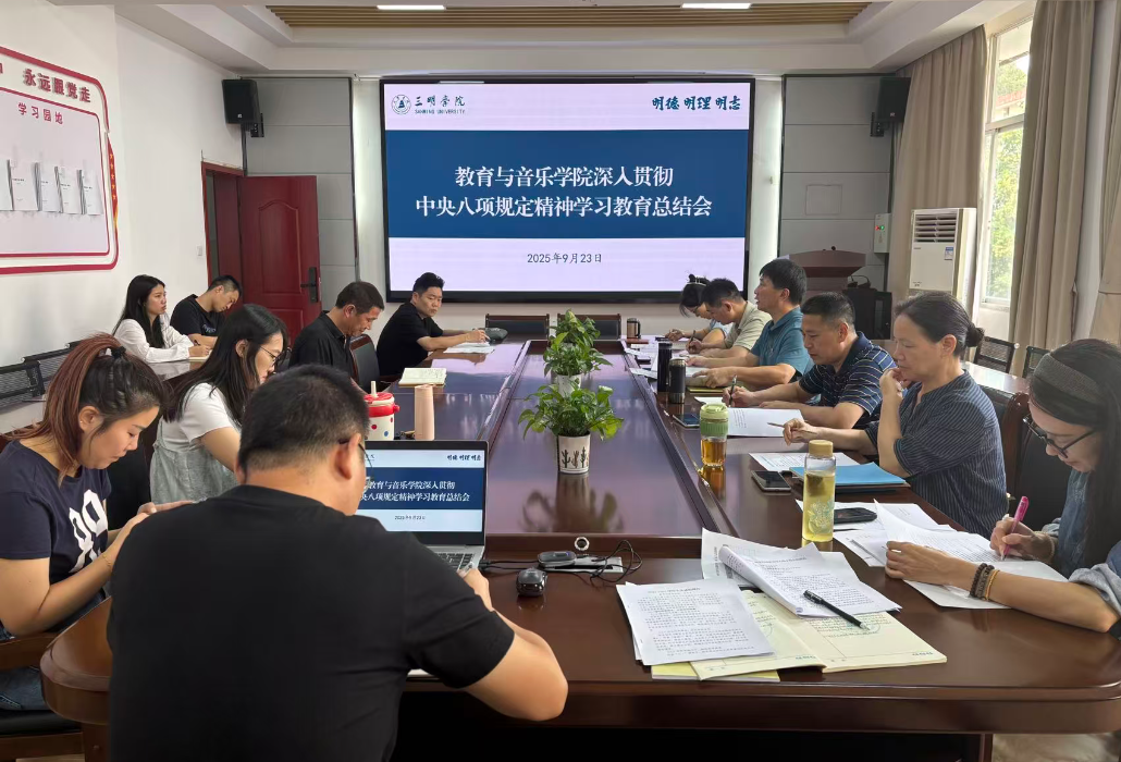 9月25日,三明学院教育与音乐学院党委理论学习中心组召开专题学习会,深入研讨《习近平谈治国理政》第五卷,并总结深入贯彻中央八项规定精神学习教育成果。学院党委班子成员、各党支部书记及相关科室负责人参会。