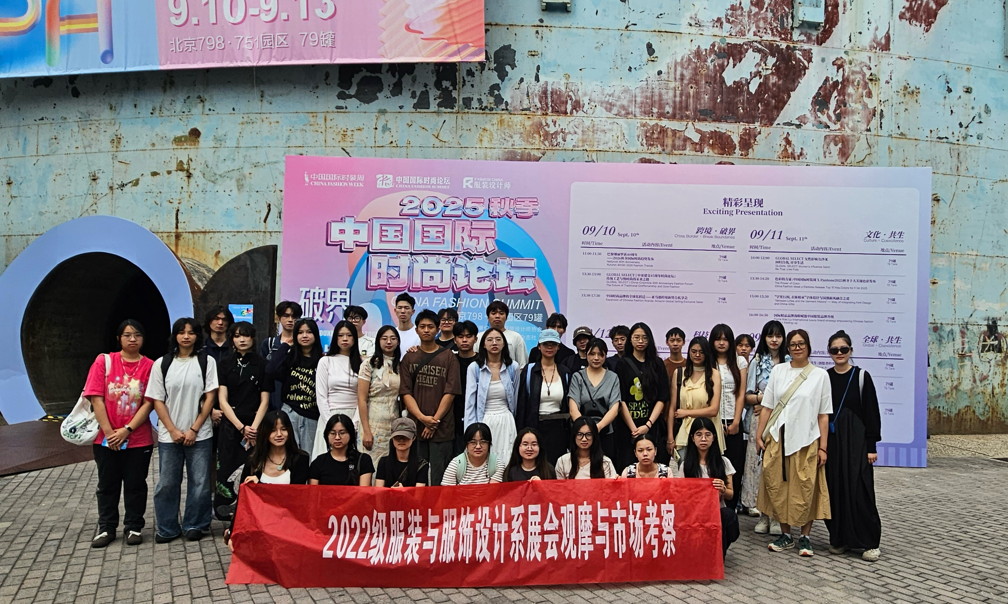 9月10日至16日,艺术与设计学院2022级服装与服饰设计专业40余名学生前往北京,围绕2026春夏北京时装周,开展沉浸式市场考察与专业实践活动。