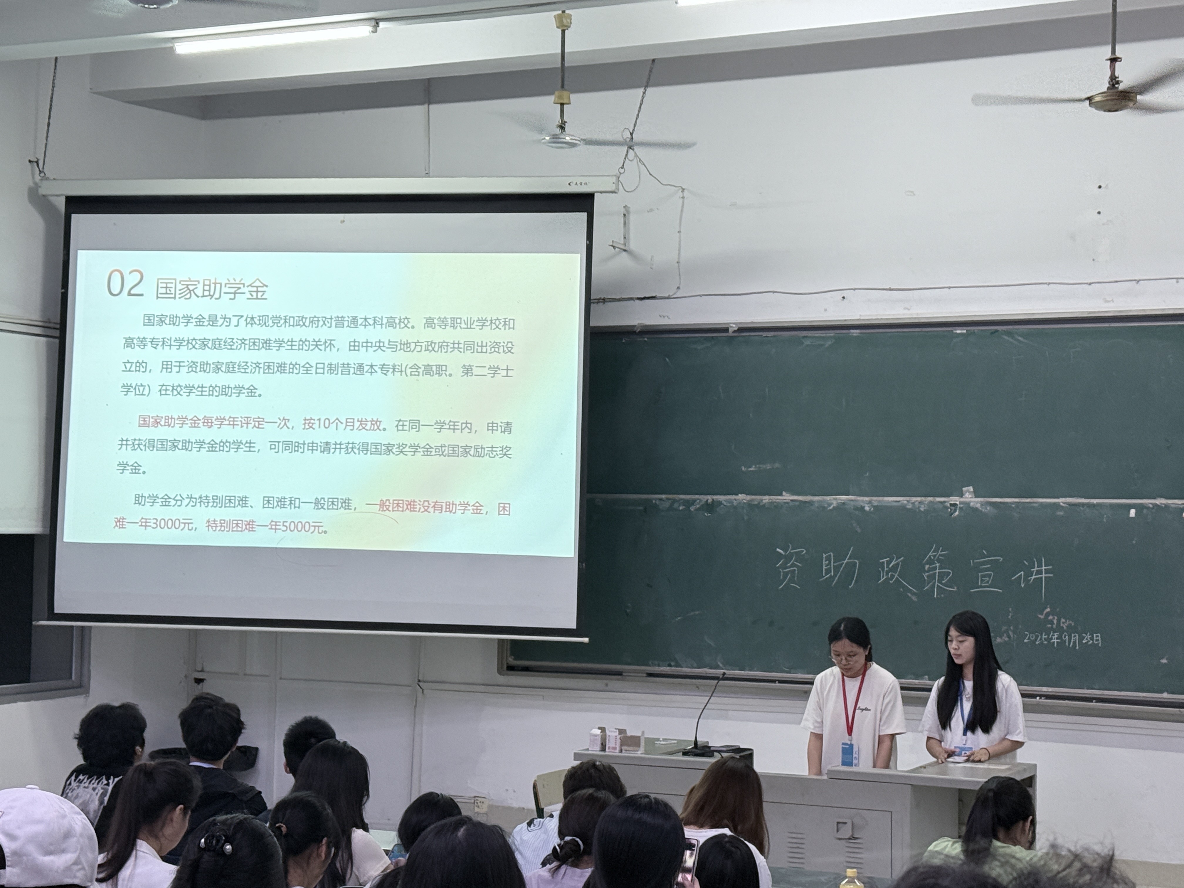 9月25日,文化传播学院于鸿文楼(一)101、201教室开展资助政策宣讲暨新老生学习经验交流会,覆盖全体2025级新生。