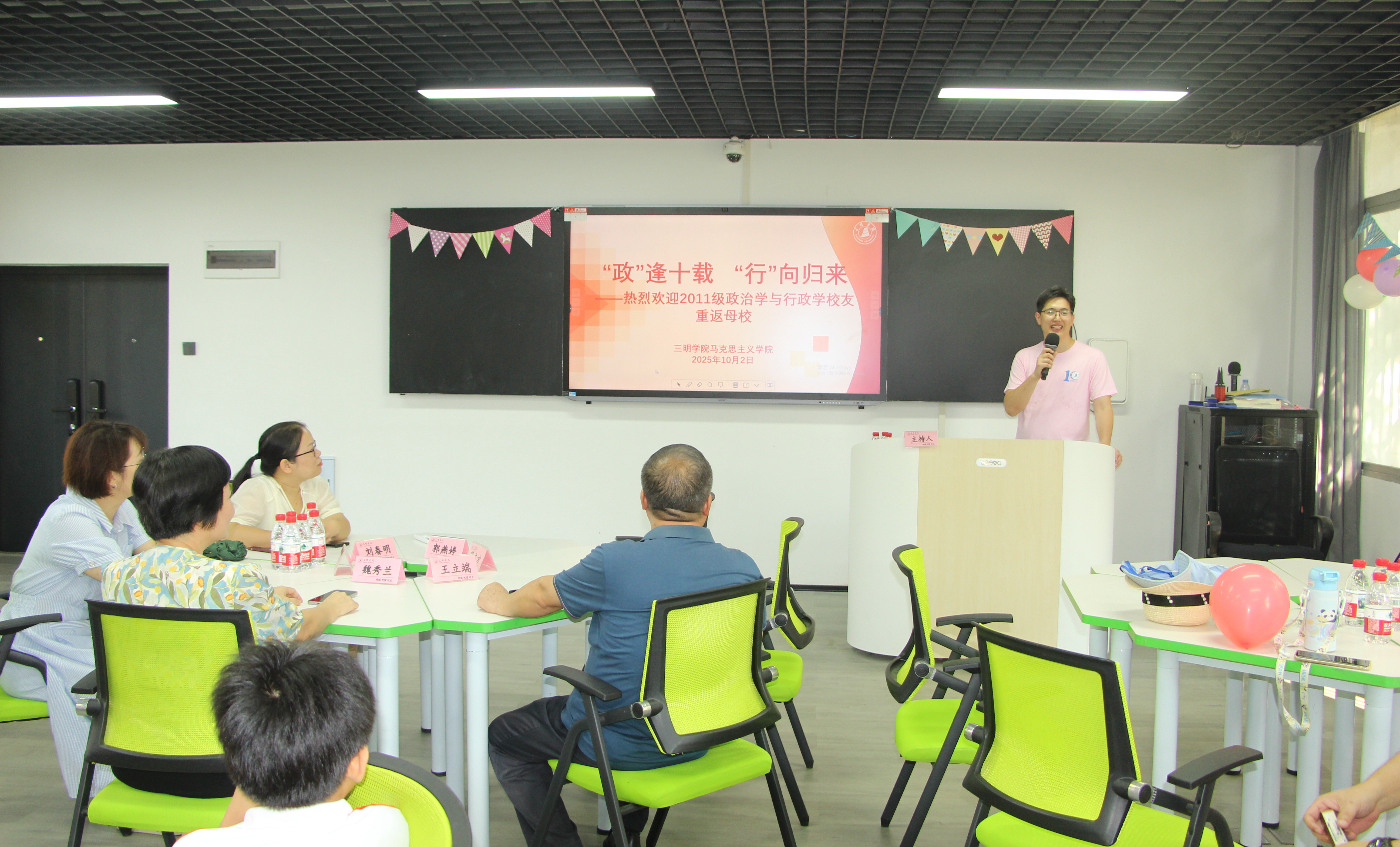 10月2日,马克思主义学院2011级政治学与行政学专业校友重返母校,在明德楼(二)107教室举行以“叙同窗情谊,忆岁月芳华”为主题的毕业十周年座谈会。学院教师代表与二十余位校友欢聚一堂,共同追忆青春岁月,展望美好未来。
