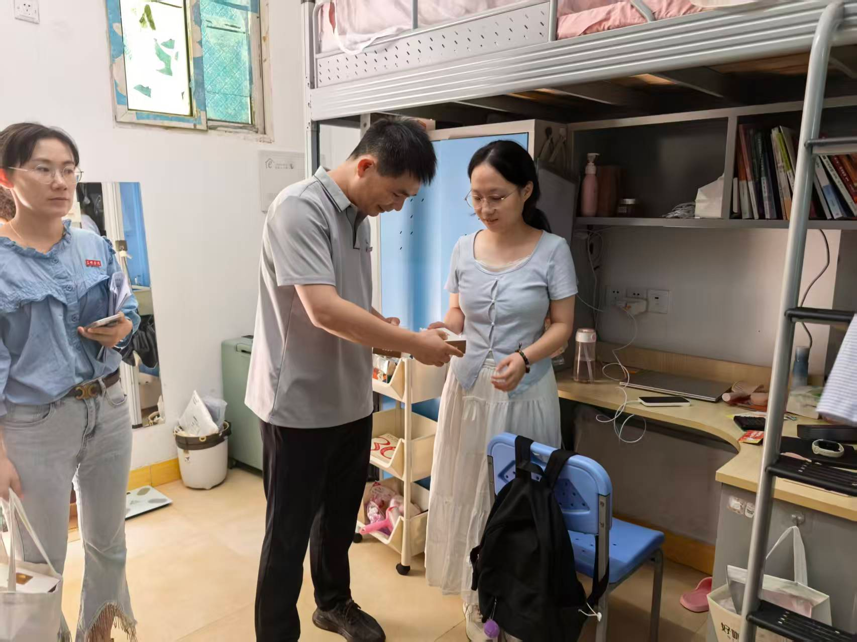 9月29日上午,在国庆、中秋双节来临之际,为深入推进“一站式”学生社区建设,教育与音乐学院党委相关负责人与辅导员代表一同走进学生宿舍,开展安全检查和节日慰问,为同学们送去关怀与祝福。