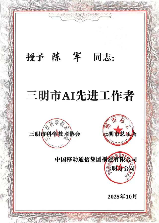 本次大赛由三明市科学技术协会、三明市总工会及中国移动通信集团福建有限公司三明分公司联合主办,以“数智三明,AI应用创享未来”为主题。比赛中,跨境电商团队围绕跨境电商领域的实际问题,开发出具有创新性和实用价值的AI应用解决方案。决赛现场,团队通过清晰的演讲与答辩,向评委充分展示了作品的技术路径与应用前景,并获得认可。