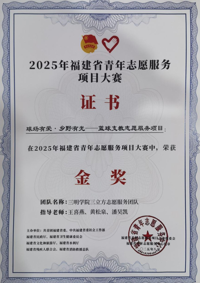 经过多年探索,体育与康养学院与姚基金合作不断深化,逐步构建起“高校+公益组织+地方政府”多方联动的公益支教模式,形成“硬件捐赠+师资输送+赛事平台”的完整服务闭环,显著增强了项目的可持续性与影响力。截至目前,项目已在62所乡村小学系统开展体育支教,受益学生体质测试合格率提升至83.6%,学习积极性与心理素质同步增强。累计输送9支校队晋级姚基金全国联赛,荣获冠军3项,帮助一批批乡村孩子圆了“国赛梦”。因表现突出,三明学院被姚基金授予“志愿者基地”“优秀合作高校”称号,“篮球支教志愿服务项目”荣获2025年福建省青年志愿服务项目大赛金奖。