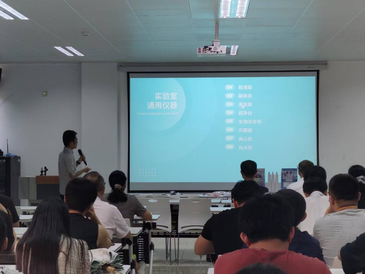 培训分演示与现场讲解环节,特邀立成维修公司林智锋工程师担任主讲,围绕移液器、箱体类等八大通用类别系统讲解仪器使用规范与维护要点,明晰常见仪器的操作要点及安全注意事项,并组织代表进行演练。学院负责人强调,实验细节直接影响实验质量,实验人员应重视实验操作的精准性,及时做好仪器与试剂的检查及更新工作,从源头上防范安全风险。