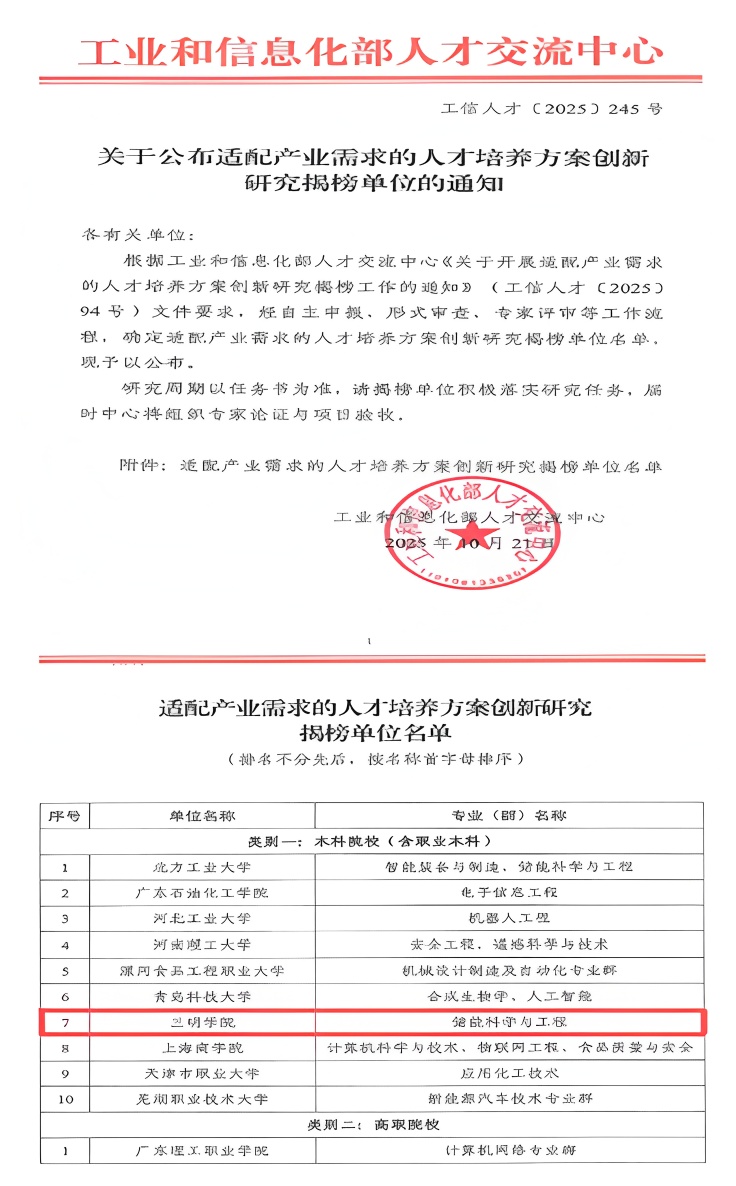 近日,工业和信息化部人才交流中心公布了适配产业需求的人才培养方案创新研究揭榜单位名单,我校资源与化工学院主办的储能科学与工程专业位列此次获批的揭榜专业之中。