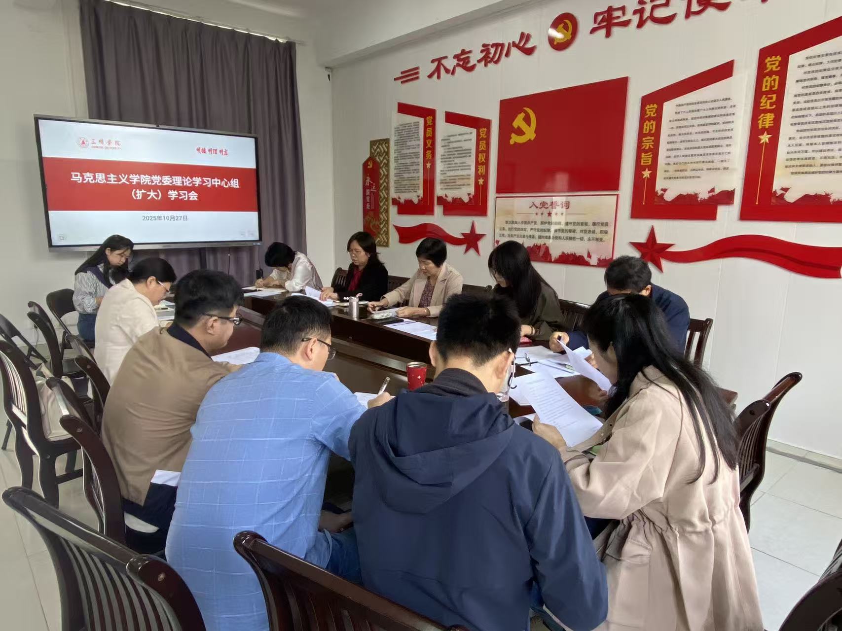 10月27日上午,马克思主义学院召开党委理论学习中心组(扩大)会议,对“党的二十届四中全会精神”进行了集中学习研讨。院领导,各科室、各党支部书记、教研室(系)主任参加了本次学习会。
