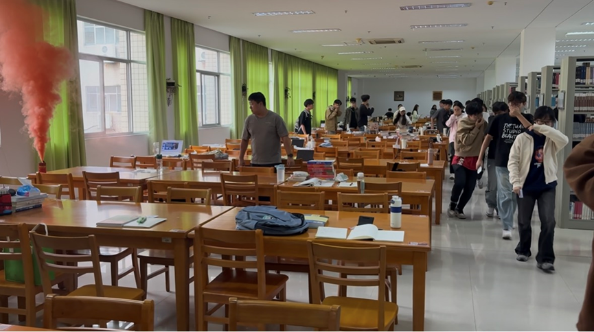 下午3时30分,随着警报声的响起,消防演练正式开始。各区域负责老师和图书馆志愿者迅速在指定岗位引导学生读者按照预定的疏散路线有序撤离。在疏散过程中,读者捂住口鼻,低姿前行,表现出良好的应急反应能力。