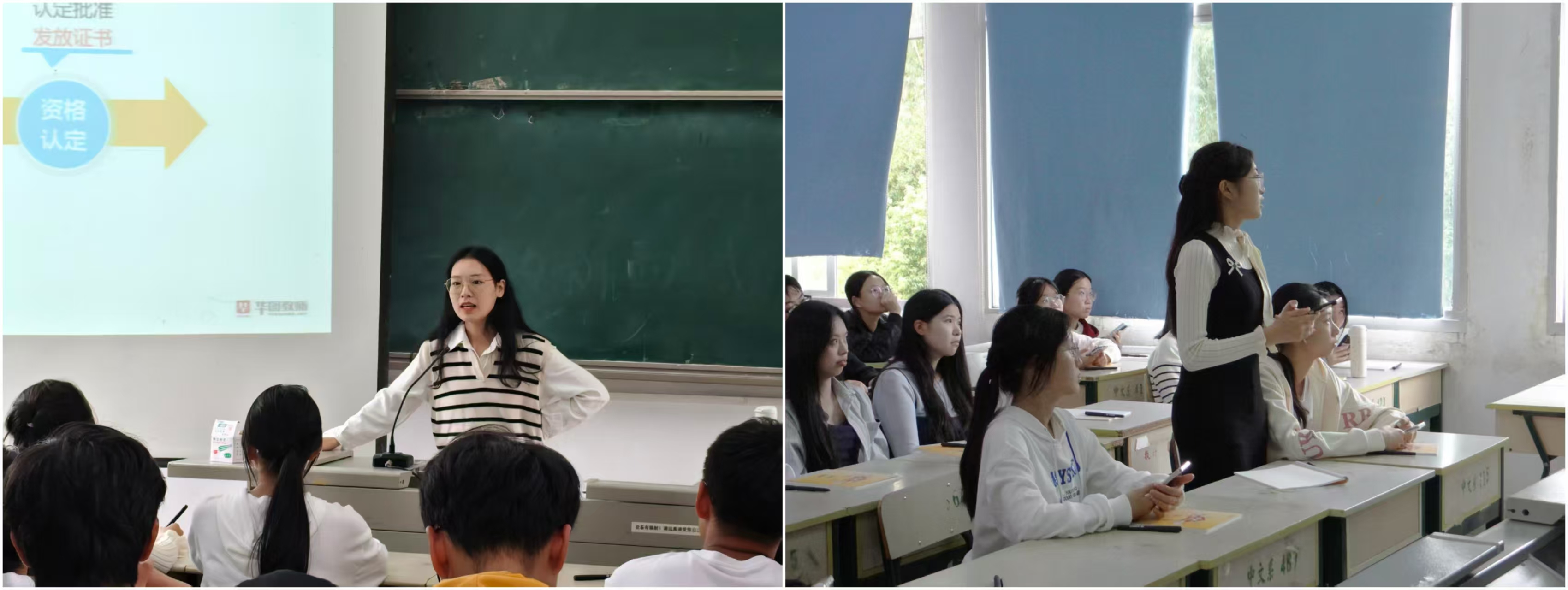 讲座伊始,范伟玲老师以教师资格考试的整体流程为切入点,从报名注意事项到考试科目设置,逐步构建起学生对教资考试全貌的认知框架。在笔试备考环节,她结合典型例题,重点解析教师观、教育政策法规、学生身心发展规律、心理健康教育及班级管理等核心知识点,不仅提炼出科学的复习路径和记忆策略,更通过典型例题现场演示审题思路与答题规范,帮助学生摆脱死记硬背,提升应试实战能力。针对面试部分,范伟玲老师则从着装规范到应答思路,全方位解析备考要点,助力同学们从容应对面试挑战。整场讲座内容层层递进,既有理论高度,又具实践指导价值。现场气氛活跃,同学们专注聆听,师生问答频繁,反响热烈。