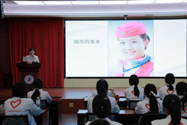 在实务培训环节,经济与管理学院陈圆老师围绕形象塑造、仪态管理与语言礼仪等方面展开专业指导,通过生动讲解与现场示范,深化了志愿者们对服务礼仪的理解,增强了服务的规范性与专业性。